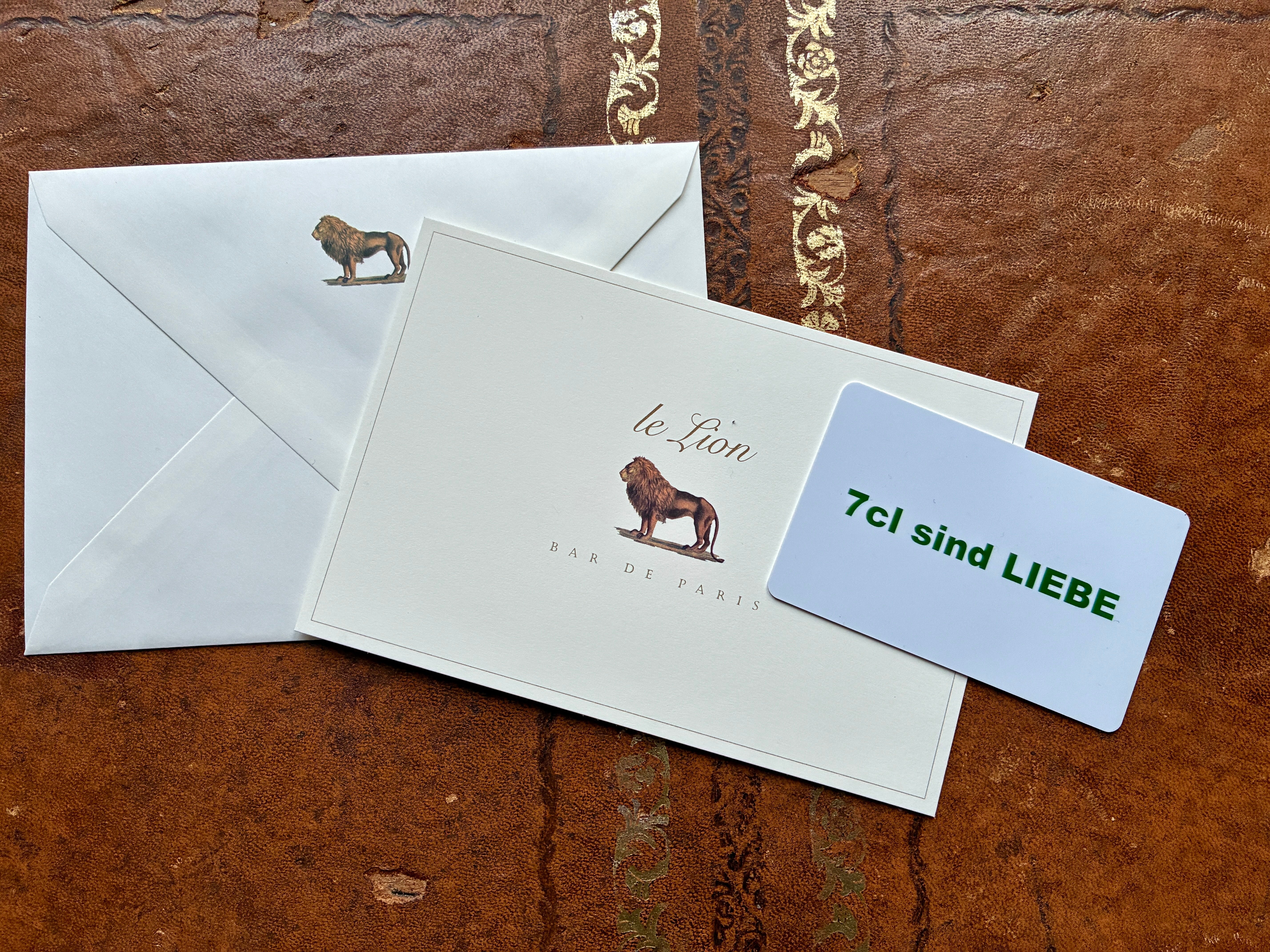 Die gedruckte Gutscheinkarte mit QR Code kommt aktuell noch in einen schönen Löwenumschlag mit feiner Le Lion Postkarte. Falls man „verschenken“ möchte, kann sie hier stilecht überreicht werden. Das Set „Gutscheinkarte“ in Löwenumschlag mit Löwen Postkarte kommt in einen verstärkten Umschlag, der knickgeschützt ist.